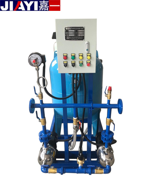 定壓補(bǔ)水機(jī)組由囊式壓力罐、水泵、控制箱、底架、壓力感應(yīng)裝置、管道閥門(mén)等組合而成,是一種兼有升壓、調(diào)節(jié)、儲(chǔ)水、供水等多種功能的常用供水設(shè)備。
