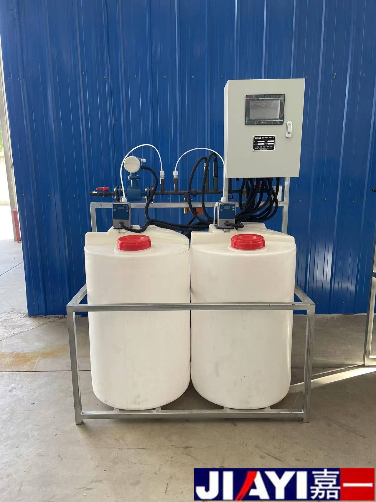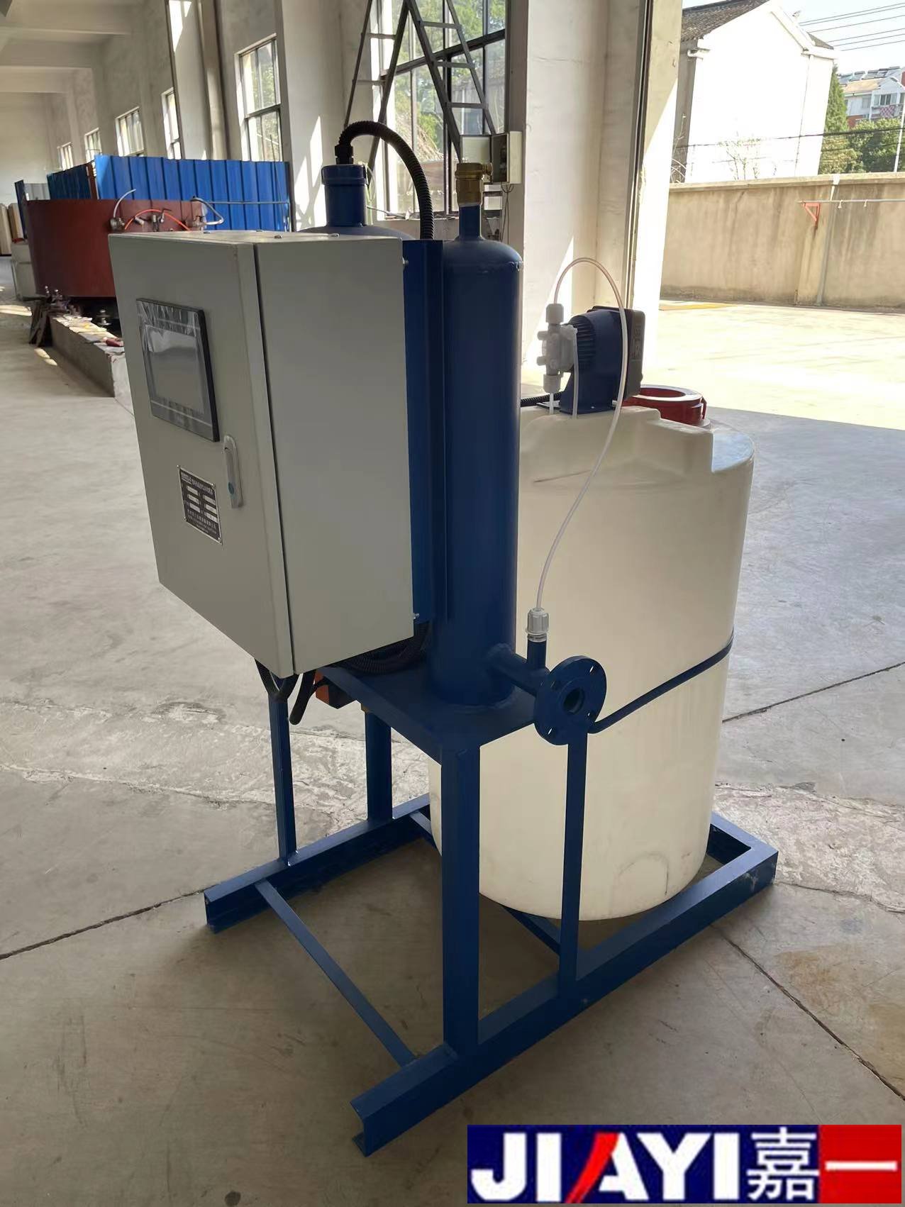 全自動加藥裝置采用時間程序控制,此控制方式無需儀表的支持,首先根據系統的運轉需要設定自動加藥的周期、加藥量、加藥時間和加藥頻率。在以后的系統運轉過程中,到加藥周期,計量泵自動打開加藥,加到規定的時間計量泵關閉;到排污周期,計量泵停止加藥,排到規定的時間后,計量泵繼續開啟,補充排污損失掉的藥劑,把系統的含藥量維持在正常的水平、加到規定的時間計量泵關閉。