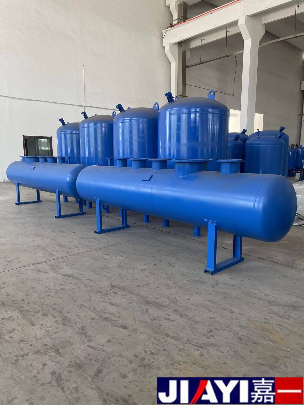 分集水器是由集水器和分水器組合而成的水流量分配和匯集裝置。分水器是將一路進水通過一個容器分為幾路輸出的設備,而集水器則是將多路進水通過一個容器一路輸出的設備。其管理若干的支路管道,分別包括回水支路和供水支路,用碳鋼或不銹鋼板制作,屬于壓力容器類專業制造,其需要安裝壓力表溫度計。