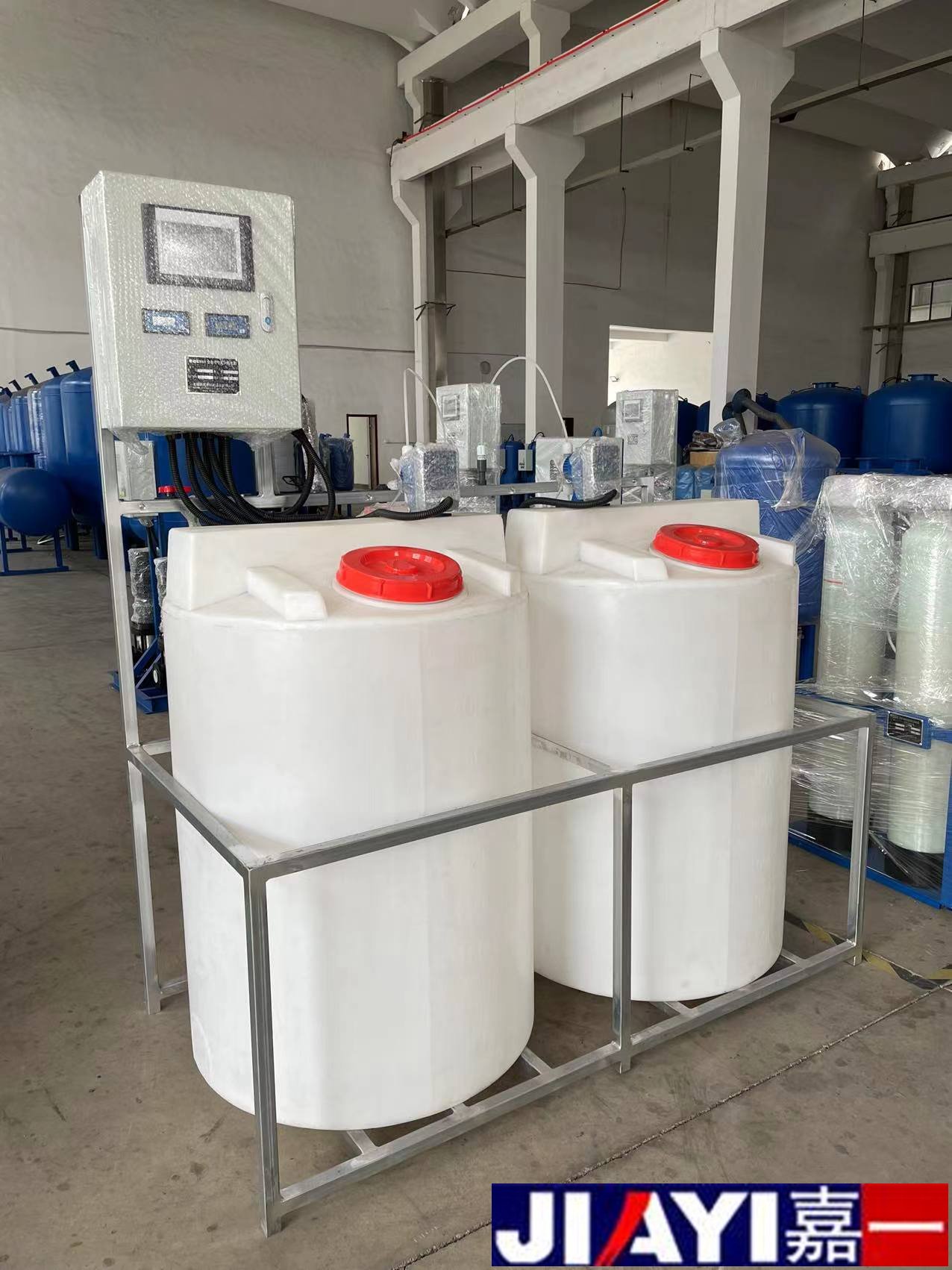 全自動加藥裝置采用時間程序控制,此控制方式無需儀表的支持,首先根據系統的運轉需要設定自動加藥的周期、加藥量、加藥時間和加藥頻率。在以后的系統運轉過程中,到加藥周期,計量泵自動打開加藥,加到規定的時間計量泵關閉;到排污周期,計量泵停止加藥,排到規定的時間后,計量泵繼續開啟,補充排污損失掉的藥劑,把系統的含藥量維持在正常的水平、加到規定的時間計量泵關閉。
