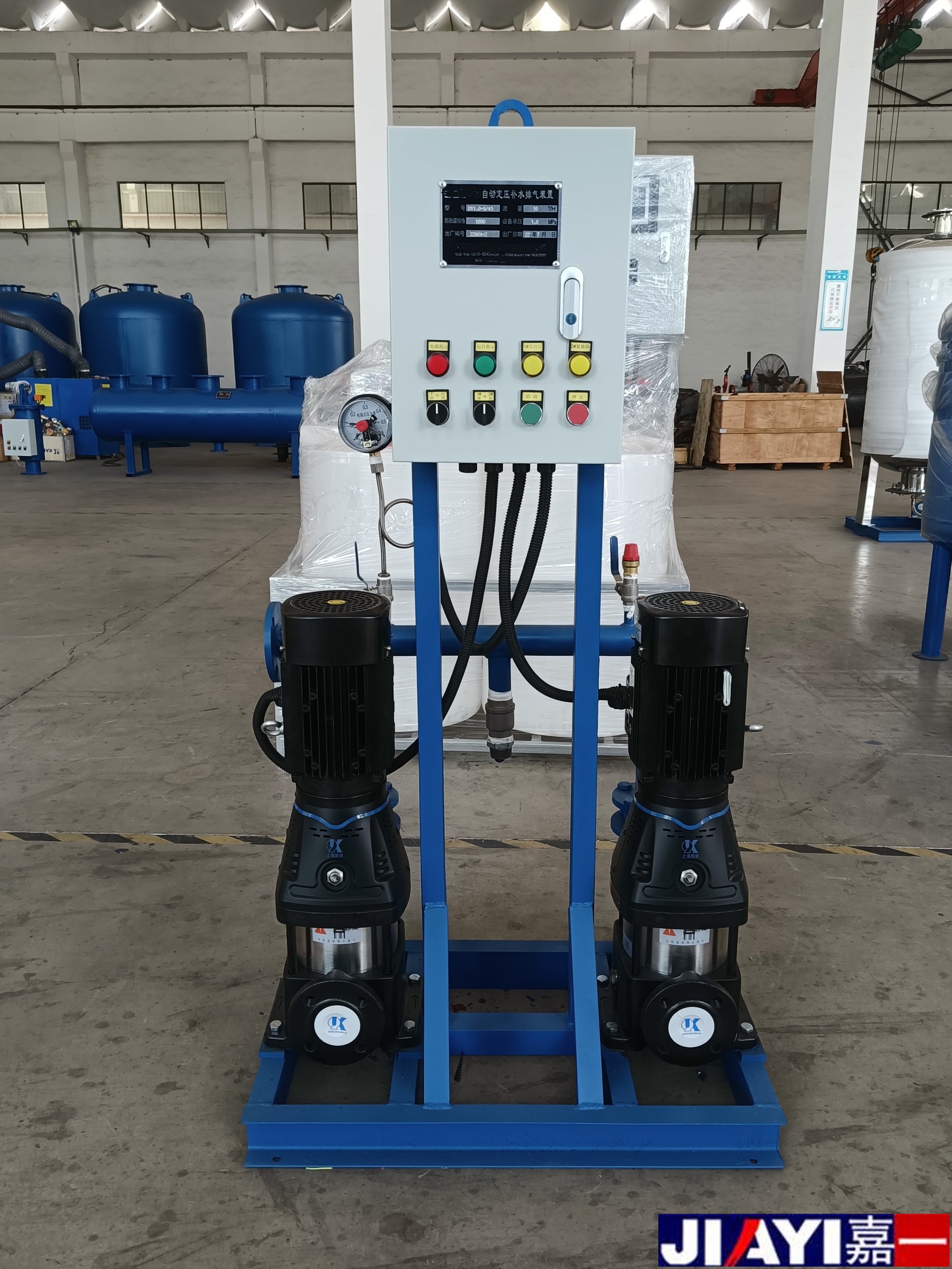 定壓補水機組由囊式壓力罐、水泵、控制箱、底架、壓力感應裝置、管道閥門等組合而成,是一種兼有升壓、調節、儲水、供水等多種功能的常用供水設備。定壓補水機組利用氣壓罐的可調節能力,可自動調節用戶水量的變化,當用水量減少或不用水時,可較長時間不啟動水泵,達到節能目的。與水塔、高位水箱相比可節省投資約40%-60%。該設備結構緊湊,與其他傳統的供水裝置相比減少了占地面積,節省了土地資源。本設備全自動運行,無需專人管理,工作可靠。