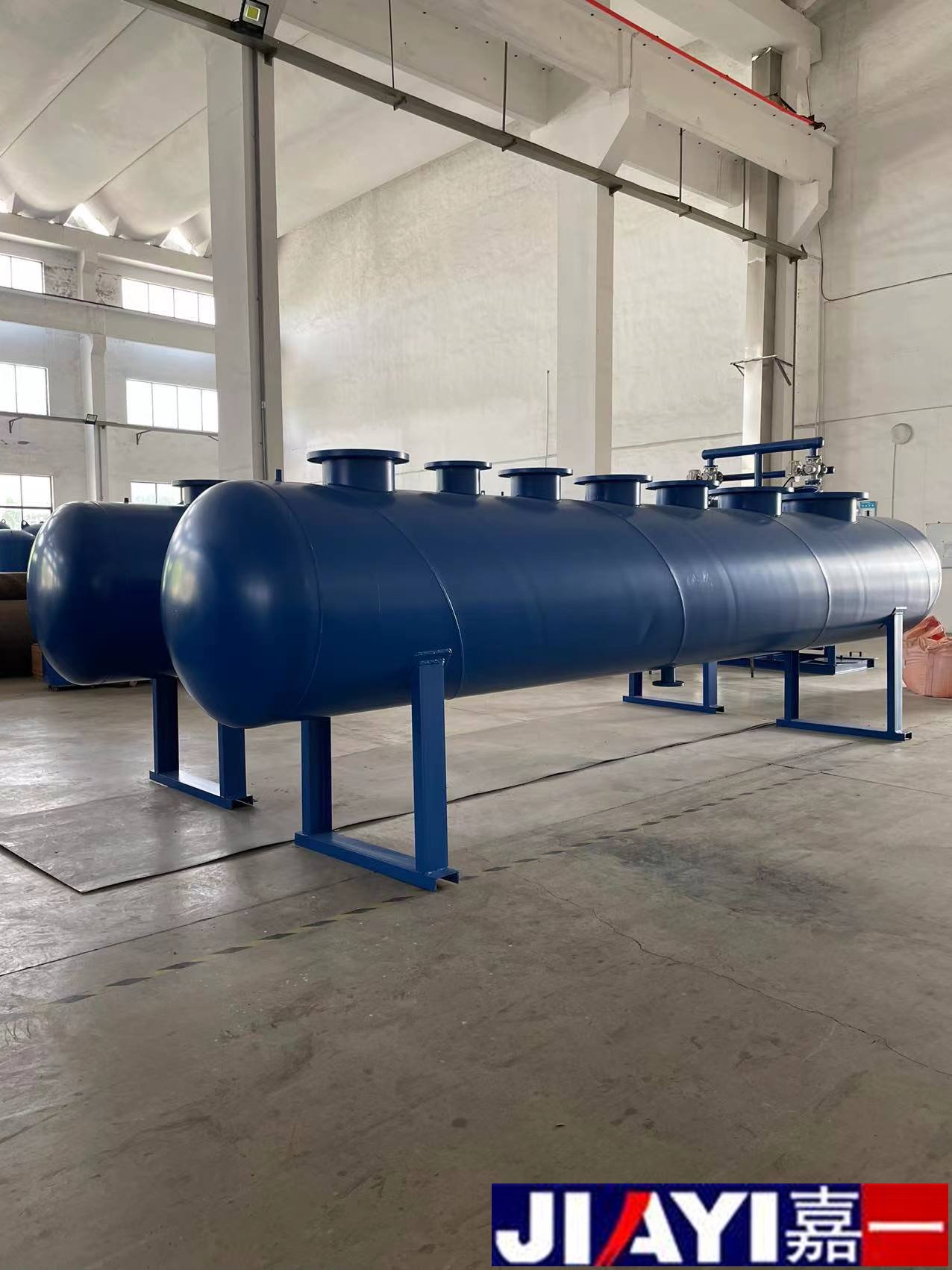 分水器是將一路進水通過一個容器分為幾路輸出的設備,而集水器則是將多路進水通過一個容器一路輸出的設備。其管理若干的支路管道,分別包括回水支路和供水支路,用碳鋼或不銹鋼板制作,屬于壓力容器類專業制造,其需要安裝壓力表溫度計。它一方面將主干管的水按需要進行流量分配,保證各區域分支環路的流量滿足負荷需要,同時還要將各分支回路的水流匯集,并且輸入回水主干管中,實現循環運行。其回水再利用,可達到更節能的效果,可以同時滿足供熱與制冷的需要。