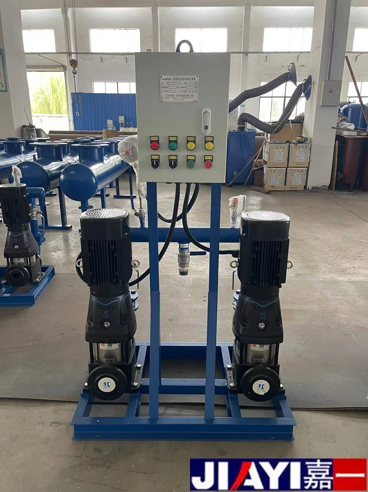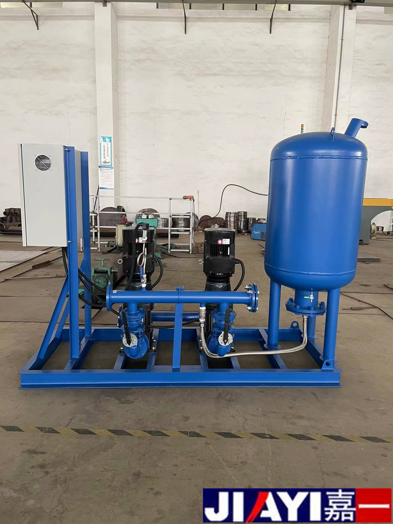 定壓補水機組由囊式壓力罐、水泵、控制箱、底架、壓力感應裝置、管道閥門等組合而成,是一種兼有升壓、調節、儲水、供水等多種功能的常用供水設備。定壓補水機組利用氣壓罐的可調節能力,可自動調節用戶水量的變化,當用水量減少或不用水時,可較長時間不啟動水泵,達到節能目的。與水塔、高位水箱相比可節省投資約40%-60%。該設備結構緊湊,與其他傳統的供水裝置相比減少了占地面積,節省了土地資源。本設備全自動運行,無需專人管理,工作可靠。
