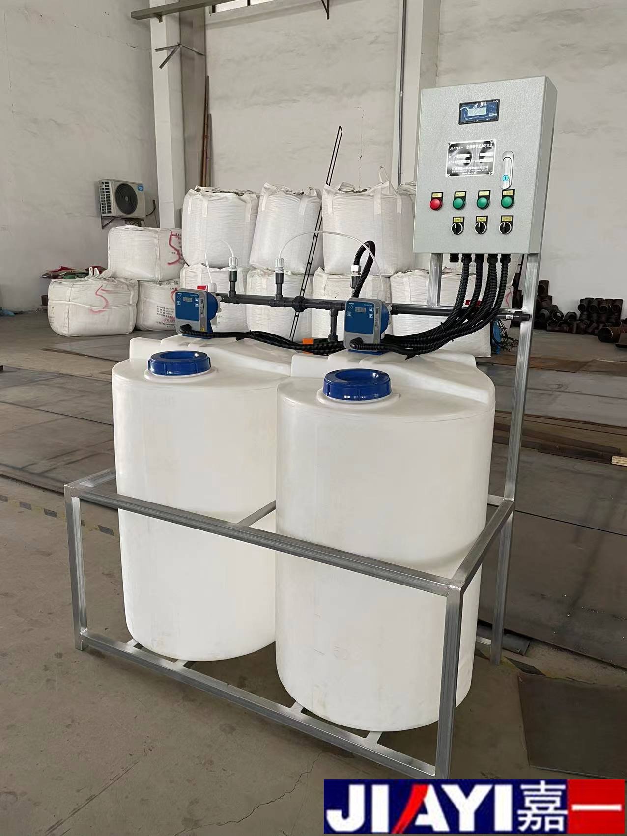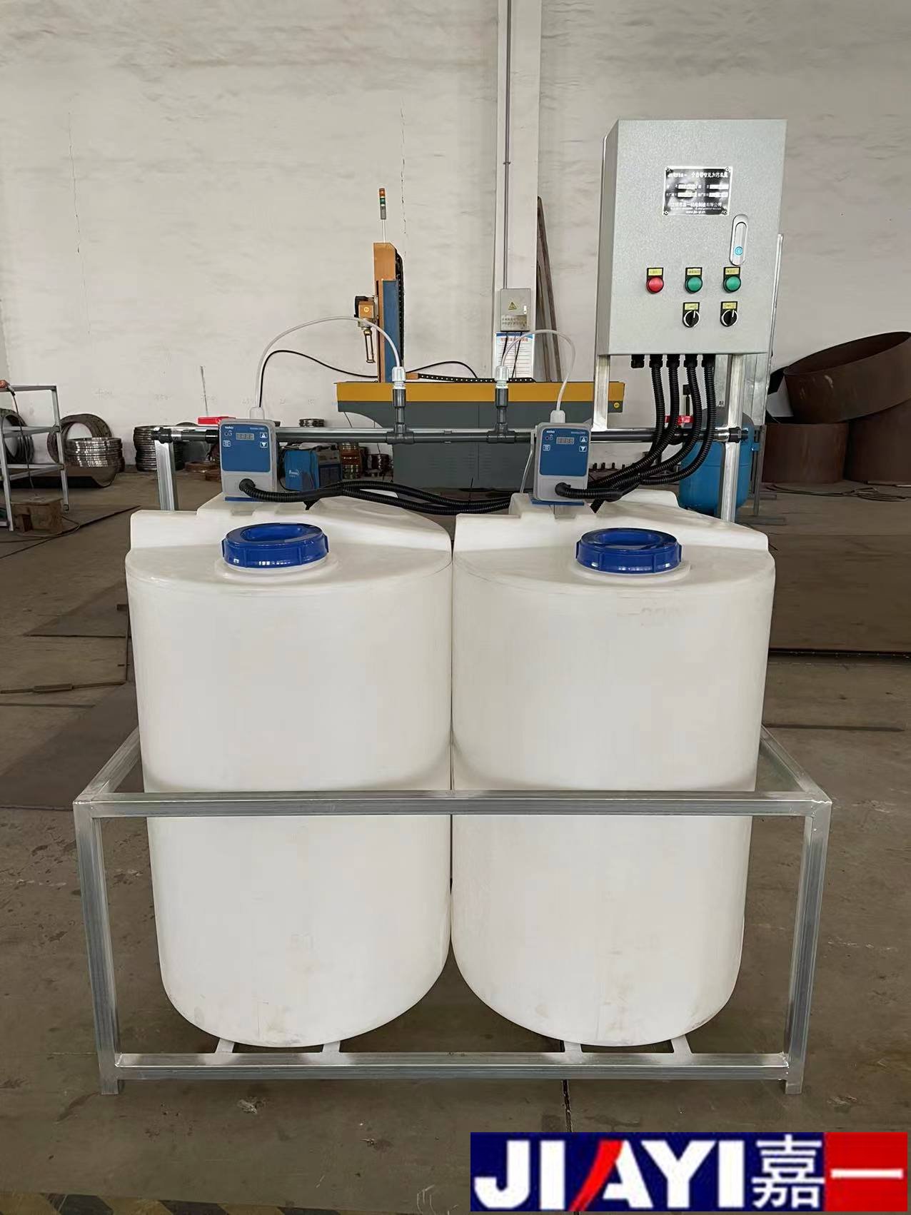 全自動加藥裝置采用時間程序控制,此控制方式無需儀表的支持,首先根據系統的運轉需要設定自動加藥的周期、加藥量、加藥時間和加藥頻率。在以后的系統運轉過程中,到加藥周期,計量泵自動打開加藥,加到規定的時間計量泵關閉;到排污周期,計量泵停止加藥,排到規定的時間后,計量泵繼續開啟,補充排污損失掉的藥劑,把系統的含藥量維持在正常的水平、加到規定的時間計量泵關閉。