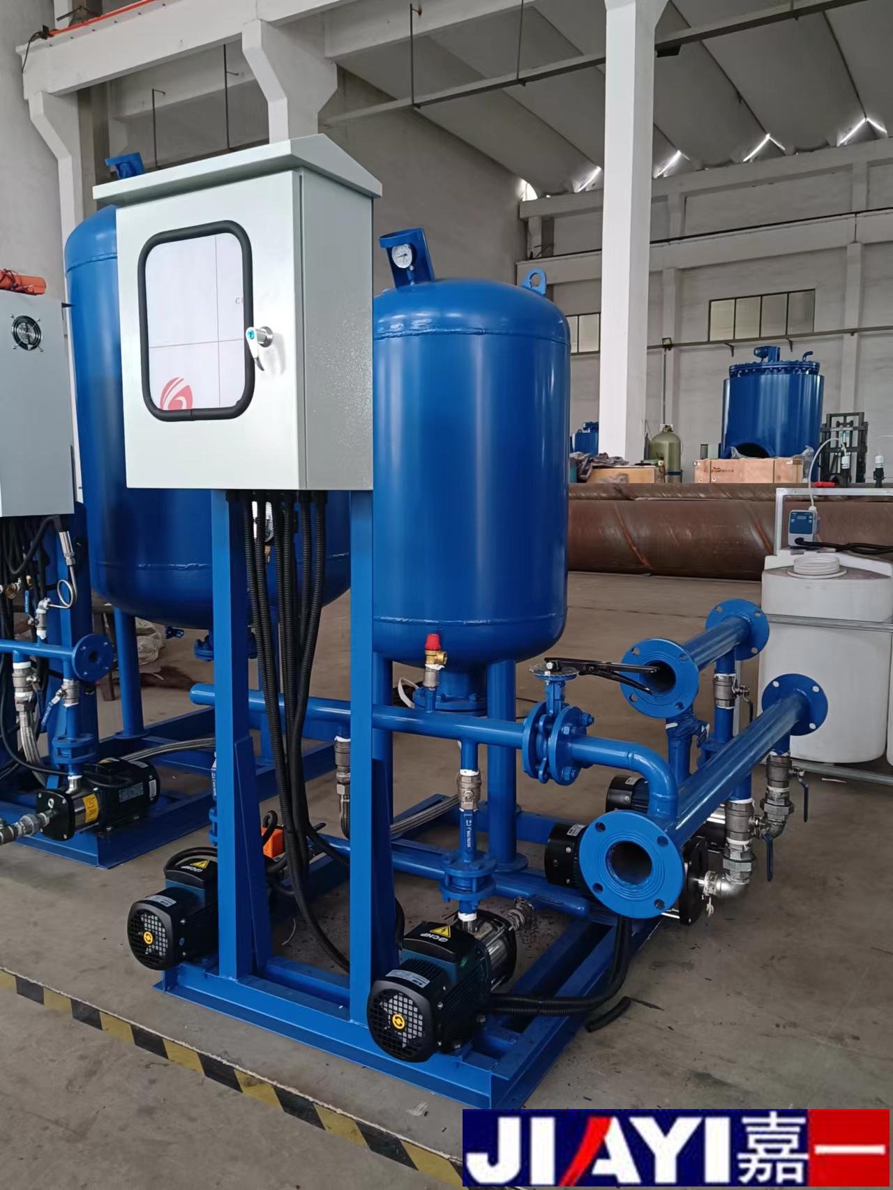 定壓補水機組由囊式壓力罐、水泵、控制箱、底架、壓力感應裝置、管道閥門等組合而成,是一種兼有升壓、調(diào)節(jié)、儲水、供水等多種功能的常用供水設(shè)備。定壓補水機組利用氣壓罐的可調(diào)節(jié)能力,可自動調(diào)節(jié)用戶水量的變化,當用水量減少或不用水時,可較長時間不啟動水泵,達到節(jié)能目的。與水塔、高位水箱相比可節(jié)省投資約40%-60%。該設(shè)備結(jié)構(gòu)緊湊,與其他傳統(tǒng)的供水裝置相比減少了占地面積,節(jié)省了土地資源。本設(shè)備全自動運行,無需專人管理,工作可靠。