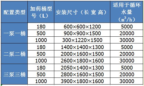 全自動加藥裝置主要由自動控制柜、記錄儀、交流電機、加藥泵等組成。自動控制柜內有變頻器、調節器、檢測儀等,見下表。檢測儀的選擇由用戶的加藥種類決定,例如:加氨,檢測儀可選用電導率儀或PH計,加磷酸鹽可選用快速磷酸根分析儀,中和池可選用PH計,協調磷酸鹽處理則需采用R表,混凝則采用流動電流測定儀,加氯則需配置余氯表等等。