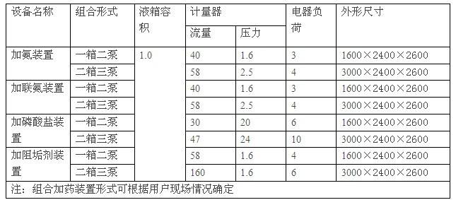 加藥設備的組成結構有:溶液箱、液位計、計量箱、攪拌器、加藥計量泵、安全閥、壓力表、控制柜、閥門以及管路集中布置,各部件的材質主要分不銹鋼和碳鋼襯膠。加藥裝置一般分單桶單泵、雙桶雙泵、三桶三泵、四桶四泵。