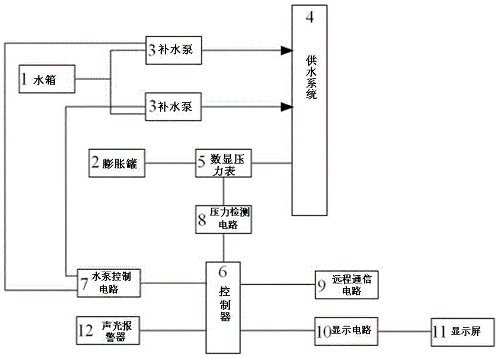 在閉式循環系統中,為了保證系統壓力的穩定,需要設置穩壓膨脹設施。當系統壓力降低時,與其連接的氣壓罐的水室壓力也隨之下降,氣室體積擴張,壓力亦隨之降低,到控制系統設定下限時,自動開啟水泵,向系統補水,直到達到設定壓力上限,水泵停止運行。當系統中水受熱,溫度升高,體積膨脹時,擠壓氣室,壓力系統壓力升高,到限定值時,系統里的水就會通過安全泄壓裝置到膨脹器(或軟化水箱),系統壓力也隨之下降到設定值,停止泄壓。