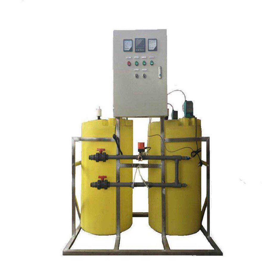全自動加藥裝置采用機電一體化的結構形式,從安裝上可分為固定式和移動式(推車式)。每種形式的加藥裝置均配有攪拌系統、加藥系統和自動控制系統。按需要將定量的藥劑放入攪拌溶液箱內進行攪拌溶解,溶解完畢后再通過計量泵送至投加點的工作過程,加藥量的大小可自由任意調節,以滿足不同加藥量的場所。水處理加藥裝置。在水處理過程中向自來水、廢水、污水中加藥。主要用于有關給排水處理、環保等工藝流程。如自來水廠、賓館、飯店、游泳池、污水處理廠等。
