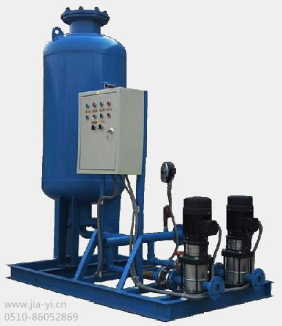 定壓補(bǔ)水排氣機(jī)組,基本的功能是定壓和補(bǔ)水,智能控制系統(tǒng)使水泵和各類電磁閥有機(jī)的配合起來,在各類傳感器的檢測下,實(shí)現(xiàn)精確定壓和自動補(bǔ)水。此外,定壓補(bǔ)水排氣機(jī)組具有明顯的排氣能力,其根據(jù)物理的原理壓力升到高工作壓力P2時,電控柜切斷水泵的電源,水泵停轉(zhuǎn),此時利用罐內(nèi)被壓縮氣體的壓力將罐內(nèi)貯存的水送入給水管網(wǎng),水室縮小,氣室擴(kuò)大,罐內(nèi)壓力也隨之下降,當(dāng)壓力降低到工作壓力P1時,電控柜接通水泵電源,水泵重新啟動,如此周而復(fù)始,不斷運(yùn)行