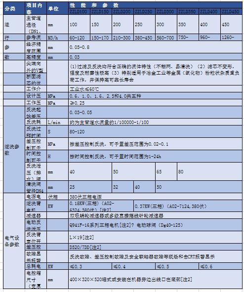 [注2]:本表所列均為普通室內(nèi)用電氣設(shè)備,如過濾器是易燃、易爆或戶外條件下工作,則所有電機、開關(guān)、控制器等均應(yīng)是防爆型或戶外型,務(wù)請在訂貨時說明;
