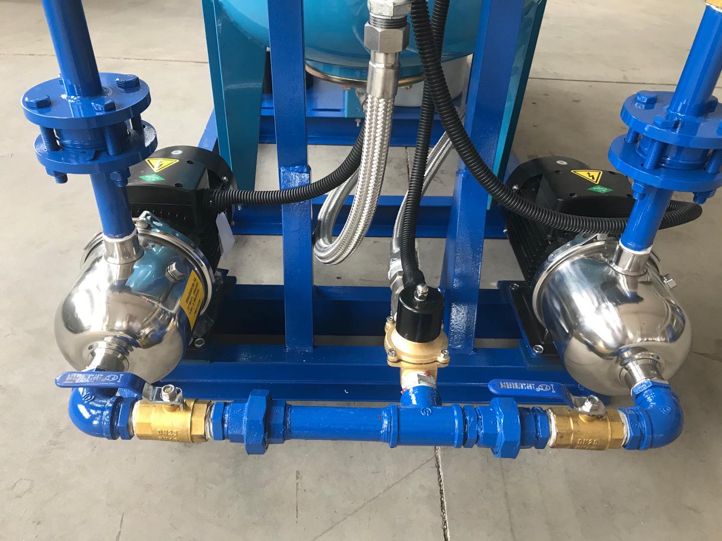 囊式定壓補水裝置采用先進的自控系統(tǒng),具有雙泵交替運行和事故漏水雙泵同時運行功能,具有低水位保護、防壓力不穩(wěn)等功能,可確保裝置安全穩(wěn)定運行。