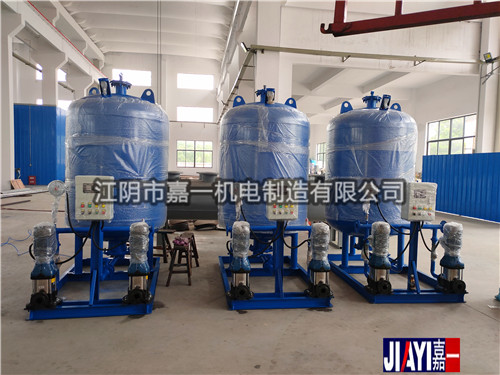 初始運(yùn)行時(shí)首先啟動(dòng)補(bǔ)水泵向系統(tǒng)及氣壓罐內(nèi)的水室中充水,系統(tǒng)充滿后多余的水被擠進(jìn)膠囊內(nèi)。因?yàn)樗牟豢蓧嚎s性,隨著水量的不斷增加,水室的體積也不斷的擴(kuò)大而壓縮氣室,罐內(nèi)的壓力也不斷的升高。當(dāng)壓力達(dá)到設(shè)計(jì)壓力時(shí),通過(guò)壓力控制器使補(bǔ)水泵關(guān)閉。當(dāng)系統(tǒng)內(nèi)的水受熱膨脹使系統(tǒng)壓力升高超過(guò)設(shè)計(jì)壓力時(shí),多余的水通過(guò)電磁閥排至補(bǔ)水箱循環(huán)使用,當(dāng)系統(tǒng)壓力超過(guò)管網(wǎng)或設(shè)備工作壓力時(shí),安全閥開(kāi)啟,起到保護(hù)管網(wǎng)和設(shè)備的作用,當(dāng)系統(tǒng)中的水由于泄露或溫度下降而體積縮小,系統(tǒng)壓力降低時(shí),膠囊中的水被不斷壓入管網(wǎng)補(bǔ)充系統(tǒng)的壓降損失,當(dāng)系統(tǒng)壓力至設(shè)計(jì)允許的低壓力時(shí),通過(guò)壓力控制器使補(bǔ)水泵重新啟動(dòng)向管網(wǎng)及氣壓罐內(nèi)補(bǔ)水,如此周而復(fù)始。用途