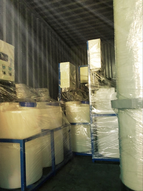 加藥裝置主要用于電廠的鍋爐給水、循環水、加聯氨、磷酸鹽等處理,也可用于石油、化工、環保、供水系統等行業。單元組合式加藥裝置,主要有溶液箱、計量泵、過濾器、安全閥、止回閥、壓力表、緩沖罐、液位計、控制柜等組成一體化安裝在一個底座上。用戶只需將組合式加藥裝置安放在加藥間,將進水口、出藥口接好并接通電源即可啟動投入運行,這種工廠化的整套裝置,可大大減少設計和現場施工的工作量,對整機系統的質量、安全和現場投運提供了可靠的保證。