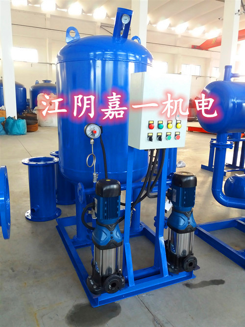 定壓補水裝置是由定壓單元和常壓脫氣膨脹罐兩大部分組成,機組運行時,系統是通過定壓單元來實現低壓自動補水、超壓自動溢流,保證系統定壓,系統在排氣過程中,是將高壓帶氣泡的水通過常壓脫氣膨脹罐進行常壓脫氣,析除循環水中的氣體。