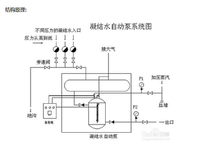 疏水自動加壓器由水室、加壓室、控制管及控制系統組成。