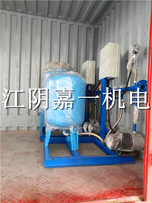 定壓補水裝置當氣壓水罐經過安裝驗收后,就可以對電接點壓力表上限P2,下限P1壓力數值進行整定,然后開始向氣壓水罐進行充水和充氣,上述工作完成后,便可接通電源開始供水。啟動水泵,向建筑管網和氣壓水罐水室內充水,由于水是不可壓縮液體,隨著水量的不斷增加,水室的體積也不斷擴大,囊形隔膜不斷向外擴張而積壓氣室,使其體積不斷縮小,管內的壓力也不斷增高,當達到設計壓力P2時,電接點壓力表指針碰到觸點,水泵則自動停泵。在水泵自動停止運轉的時間里,由于氣室被積壓的氮氣具有膨脹力,積壓囊形隔膜,使水室及管網的水具有一定的壓力,保證正常供給用戶用水。
