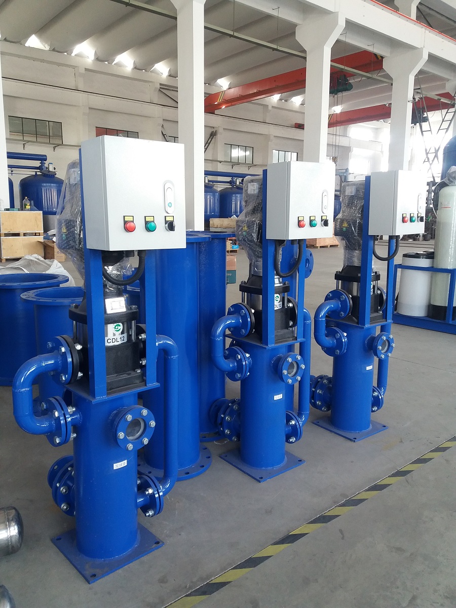 集成水保機組是采用流體控制技術,實現對系統壓力的控制;通過真空脫氣方式實現對循環水的排氣和脫氣;通過螺旋除渣技術實現對循環水中雜質的過濾及去除;通過水質在線監測裝置對系統水質檢測進行分析后,實現對循環水的自動水質處理,防止結垢和腐蝕的發生。