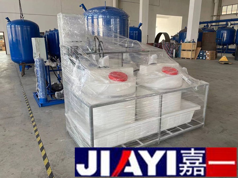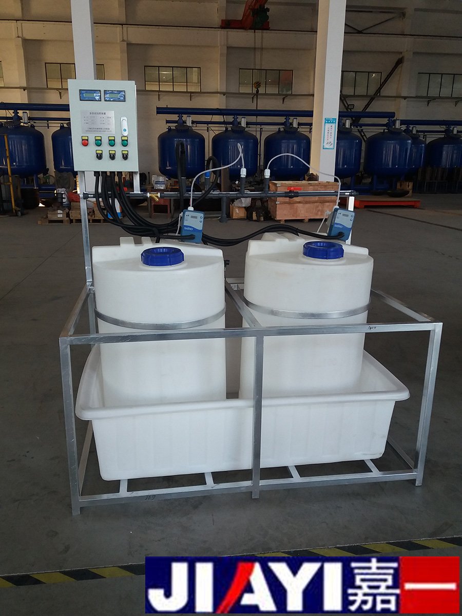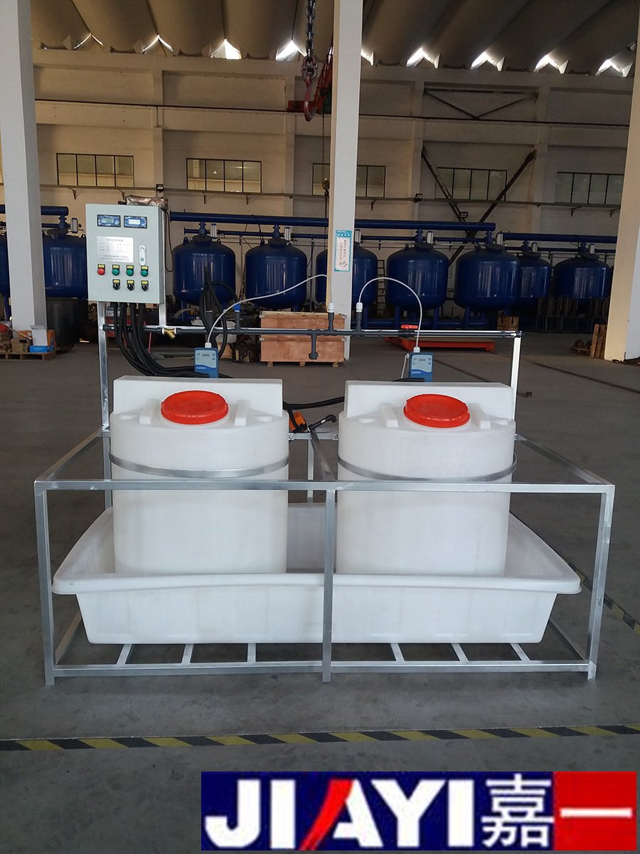 全自動加藥裝置采用時間程序控制,此控制方式無需儀表的支持,首先根據(jù)系統(tǒng)的運轉(zhuǎn)需要設(shè)定自動加藥的周期、加藥量、加藥時間和加藥頻率。在以后的系統(tǒng)運轉(zhuǎn)過程中,到加藥周期,計量泵自動打開加藥,加到規(guī)定的時間計量泵關(guān)閉;到排污周期,計量泵停止加藥,排到規(guī)定的時間后,計量泵繼續(xù)開啟,補充排污損失掉的藥劑,把系統(tǒng)的含藥量維持在正常的水平、加到規(guī)定的時間計量泵關(guān)閉。