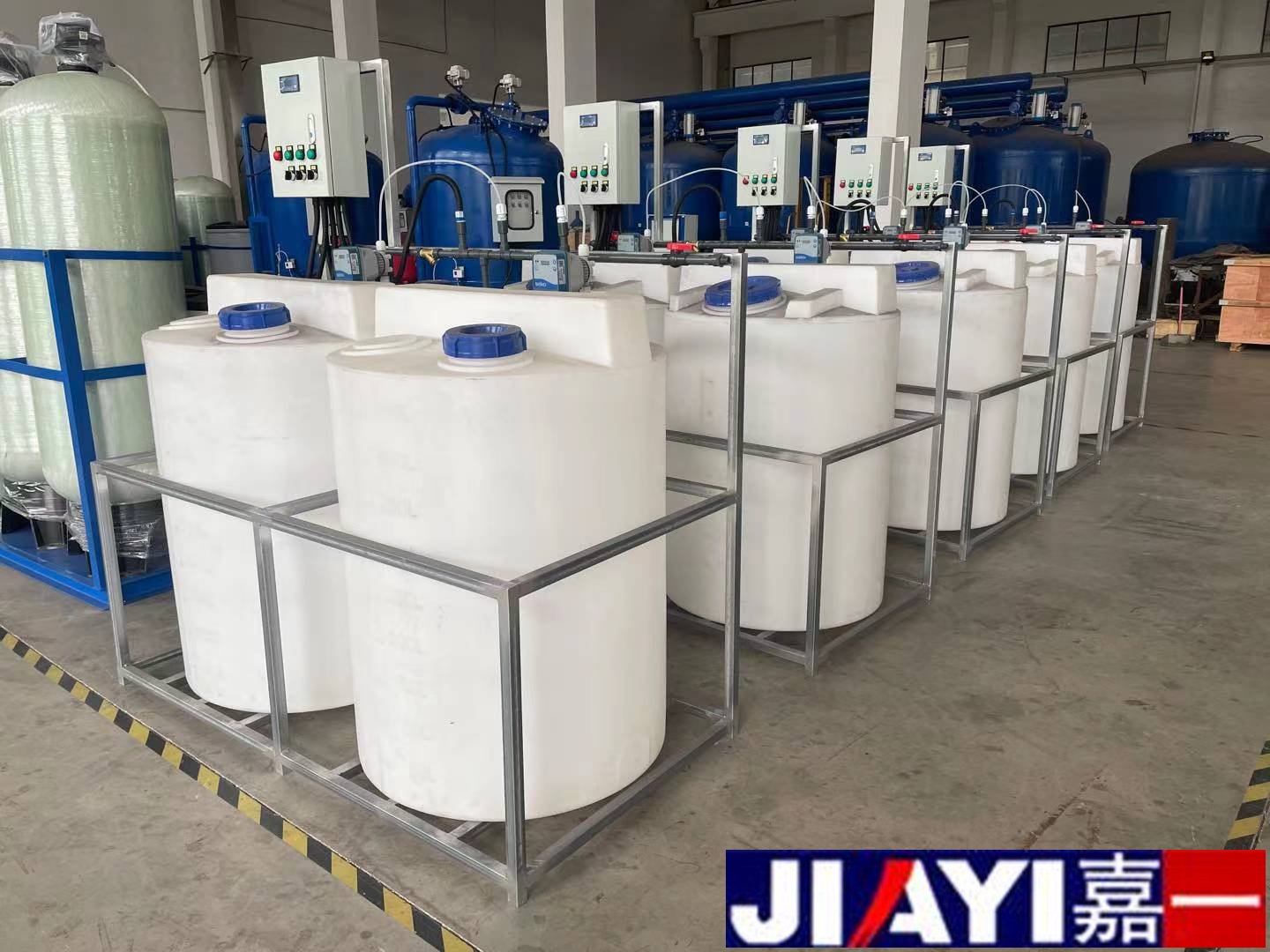 全自動加藥裝置采用時間程序控制,此控制方式無需儀表的支持,首先根據系統的運轉需要設定自動加藥的周期、加藥量、加藥時間和加藥頻率。在以后的系統運轉過程中,到加藥周期,計量泵自動打開加藥,加到規定的時間計量泵關閉;到排污周期,計量泵停止加藥,排到規定的時間后,計量泵繼續開啟,補充排污損失掉的藥劑,把系統的含藥量維持在正常的水平、加到規定的時間計量泵關閉。