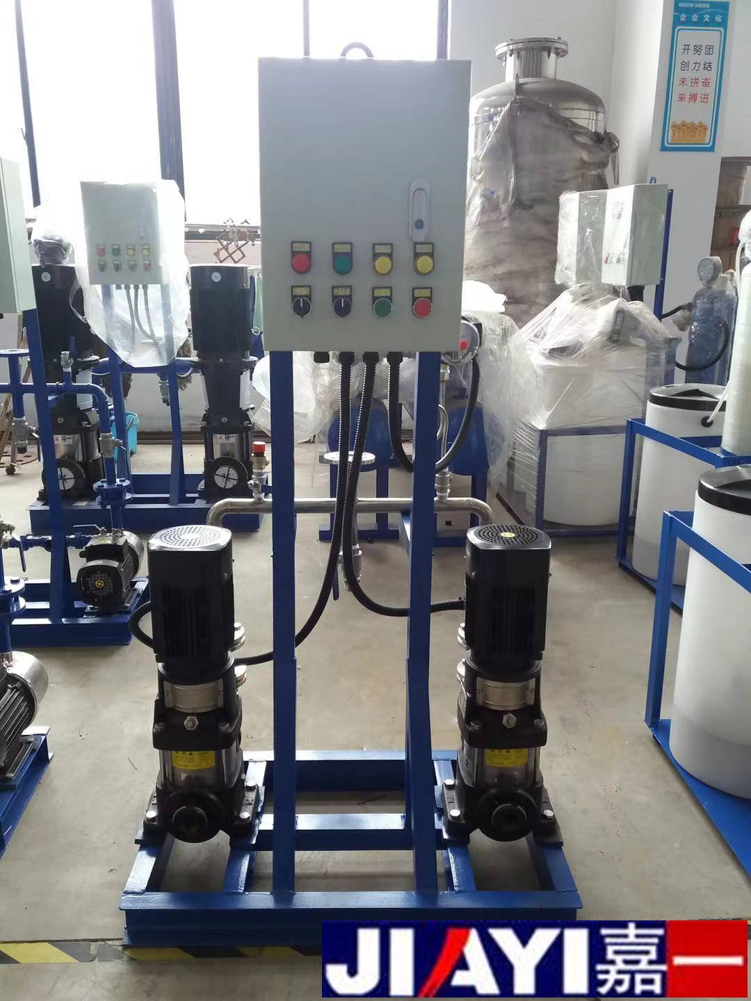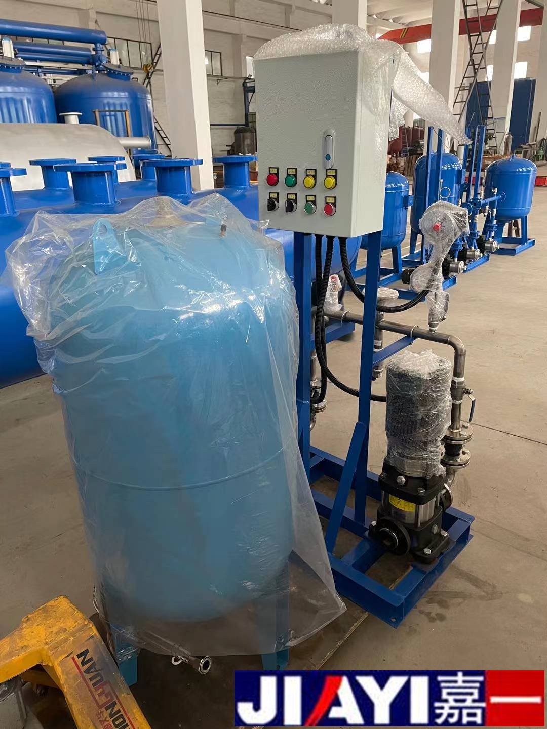 分體式定壓補水機組采用特殊技術措施,把膨脹部分和氣壓穩壓部分分開設置,可使系統的絕大部分膨脹量儲存于隔離的膨脹器中,設備的體積利用率可達90%以上,因此整機體積、高度大為縮小,節約用地50%~60%, 便于設備布置、安裝,又節約了機房的土建成本。