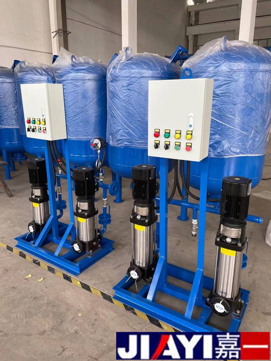 定壓補水機組由囊式壓力罐、水泵、控制箱、底架、壓力感應裝置、管道閥門等組合而成,是一種兼有升壓、調節、儲水、供水等多種功能的常用供水設備。