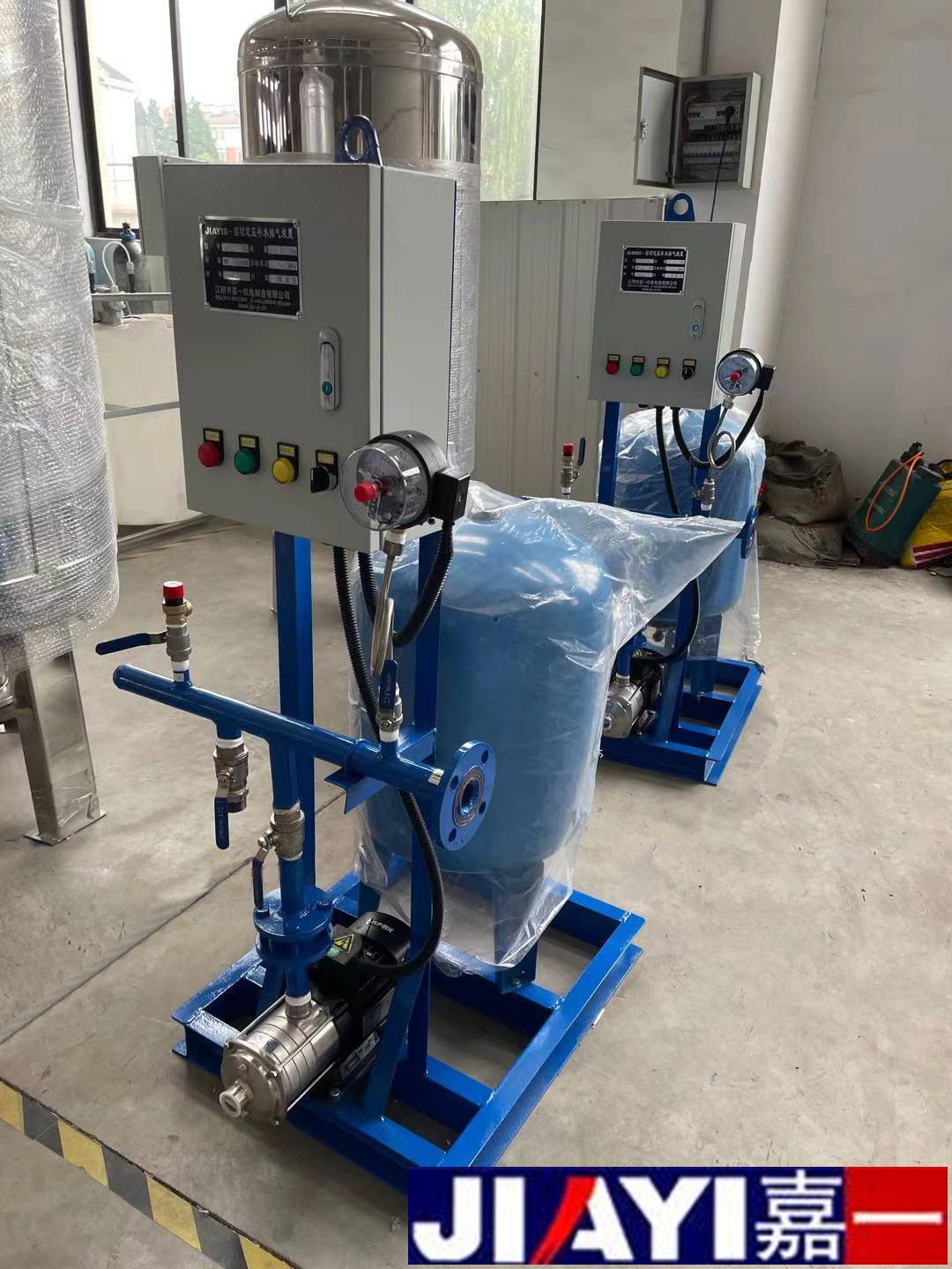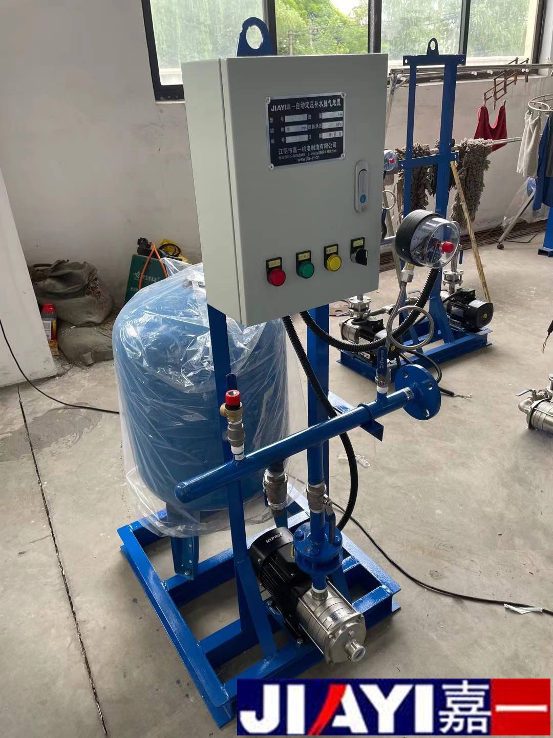 定壓補水機組是江陰嘉一機電的主營產品之一,同時獲得了“江蘇省用戶滿意產品”“江蘇省消費者(用戶)信得過企業、產品、服務”等榮譽稱號,并于2002年6月通過了江蘇省經貿委新產品新技術鑒定,公司產品遍布全國各地,深受廣大用戶歡迎。定壓補水機組由囊式壓力罐、水泵、控制箱、底架、壓力感應裝置、管道閥門等組合而成,是一種兼有升壓、調節、儲水、供水等多種功能的常用供水設備。