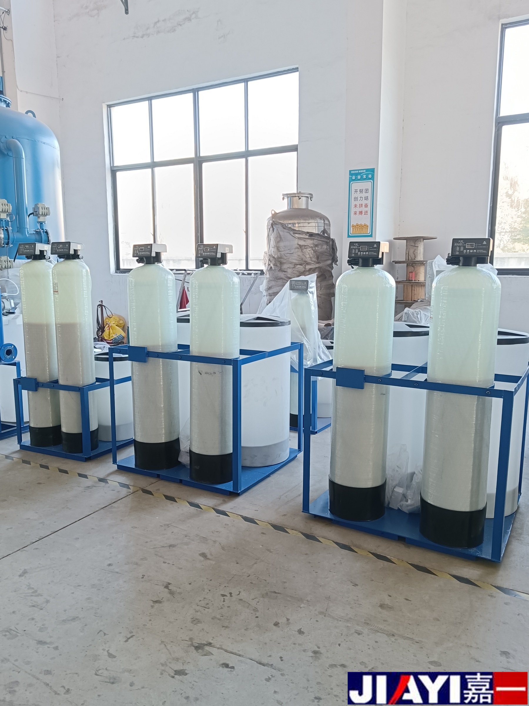 我公司研制生產的全自動軟水器(全自動鈉離子交換器),主要以“潤新"、“富萊克”等國內外知名品牌全自動軟化水控制閥為主導。該設備除需要人工定期補充鹽份外,其它程序全部自動化運行。配置方式有單罐、雙罐、多罐組合,控制方式分為時間型和流量型控制(也可根據用戶的需要選用國產手動、半自動控制裝置),單位產水量從0.5噸/小時到500噸/小時。