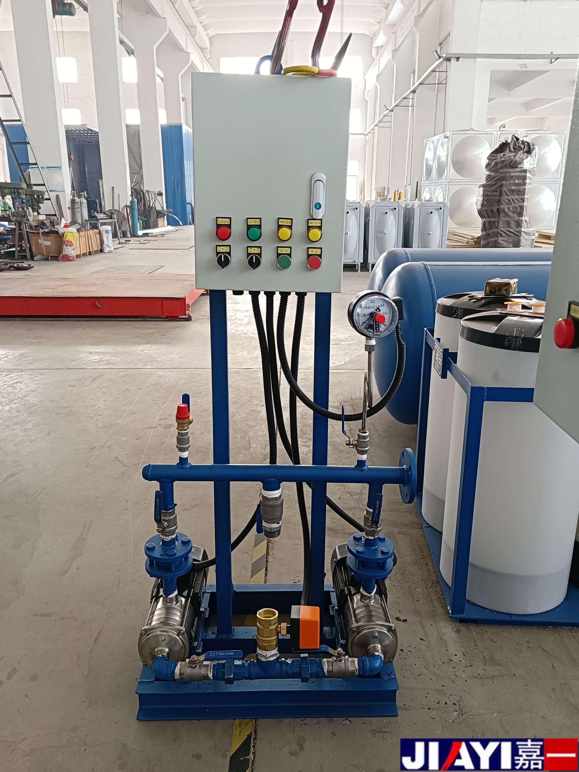 定壓補水機組由囊式壓力罐、水泵、控制箱、底架、壓力感應裝置、管道閥門等組合而成,是一種兼有升壓、調節、儲水、供水等多種功能的常用供水設備。定壓補水機組利用氣壓罐的可調節能力,可自動調節用戶水量的變化,當用水量減少或不用水時,可較長時間不啟動水泵,達到節能目的。與水塔、高位水箱相比可節省投資約40%-60%。該設備結構緊湊,與其他傳統的供水裝置相比減少了占地面積,節省了土地資源。本設備全自動運行,無需專人管理,工作可靠。