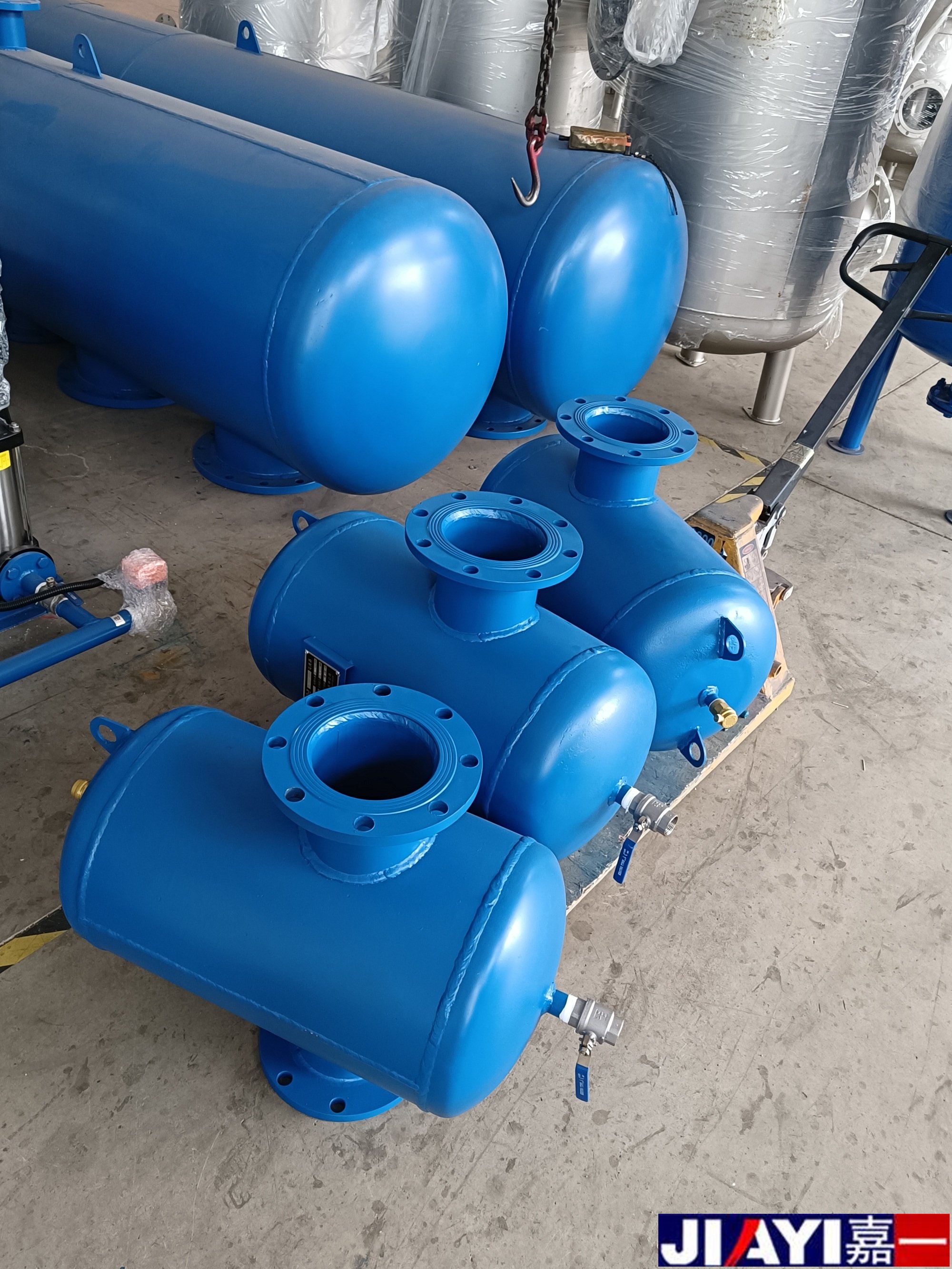 螺旋排氣除污器利用氣水分離、沉降、過濾等機理。當冷卻水、熱水、冷凍水系統(tǒng)中水進入螺旋脫氣過濾器時,體積擴大,流速急劇降低,水中氣泡分離上升至聚氣區(qū),小氣泡吸附在分離板上,當形成大氣泡上升至聚氣區(qū)后通過自動排氣閥排除。