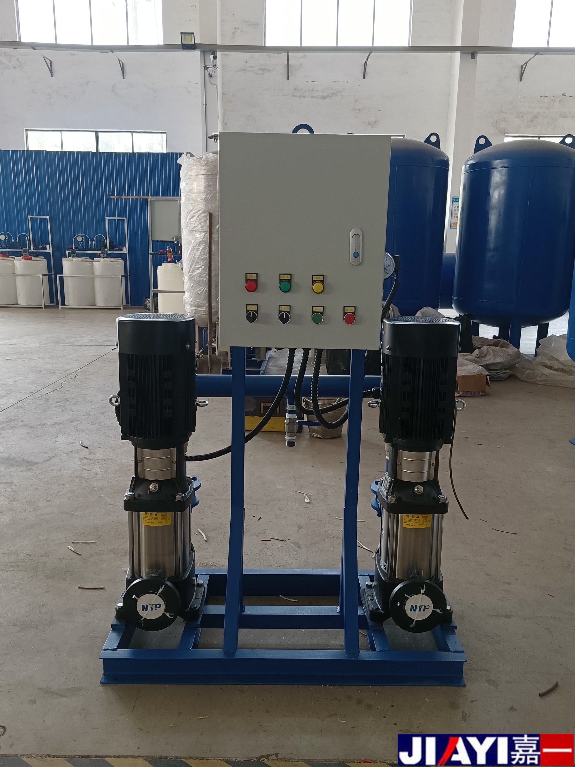 定壓補水機組由囊式壓力罐、水泵、控制箱、底架、壓力感應裝置、管道閥門等組合而成,是一種兼有升壓、調節、儲水、供水等多種功能的常用供水設備。定壓補水機組利用氣壓罐的可調節能力,可自動調節用戶水量的變化,當用水量減少或不用水時,可較長時間不啟動水泵,達到節能目的。與水塔、高位水箱相比可節省投資約40%-60%。該設備結構緊湊,與其他傳統的供水裝置相比減少了占地面積,節省了土地資源。本設備全自動運行,無需專人管理,工作可靠。