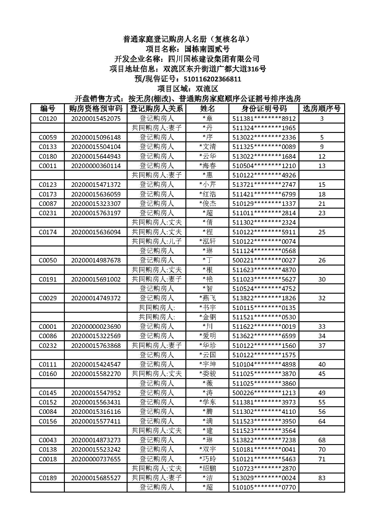 國(guó)棟南園貳號(hào) 普通家庭登記購(gòu)房人名冊(cè)(復(fù)核名單)